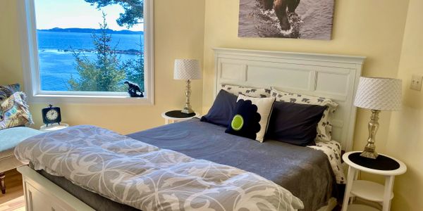 Baby Bear's room has ocean views where you can watch the tides come in, eagle soar and often see Stellar sea lions as they swim by. This room features a queen sized bed. It shares a bathroom with the Mama Bear 's Room.